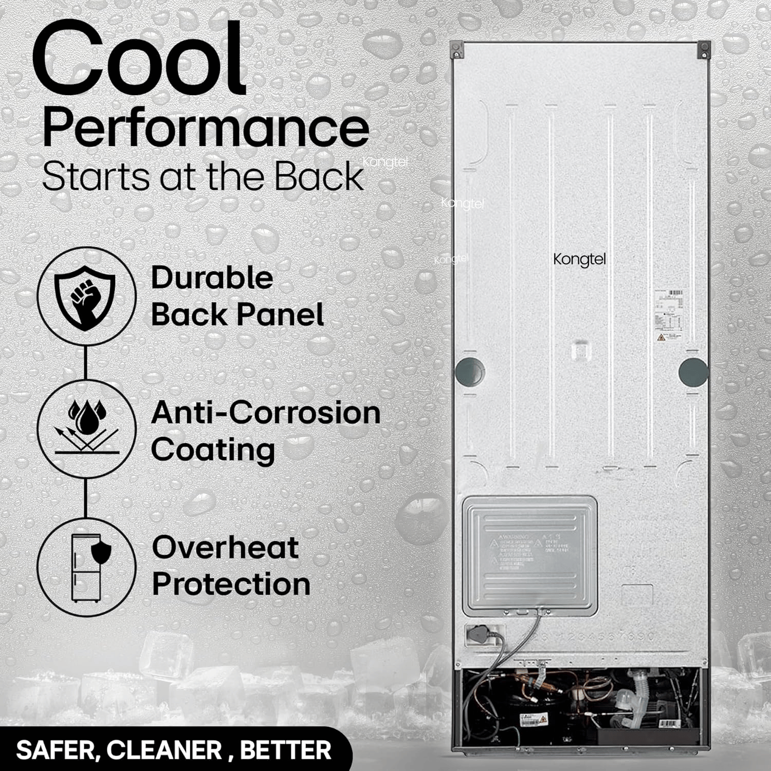 Kongtel – 236L 3-Star Digital Inverter Frost Free Double Door Refrigerator